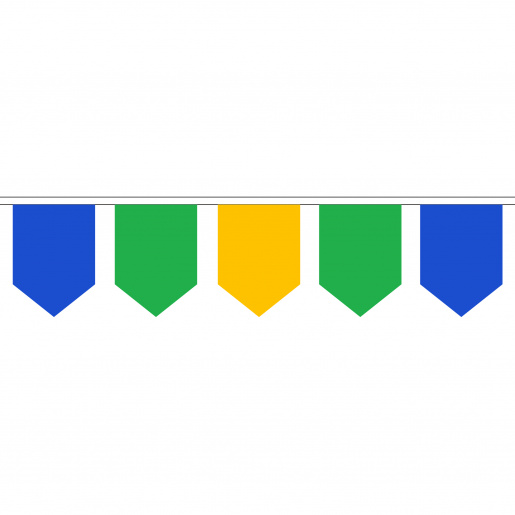 В данном виде используются чередование флажков трех цветов на выбор. Каждый флажок обработан методом горячего кройки ткани, что препятствует "осыпанию" ткани. Каждый флажок вшит внутрь ленты с расстоянием в 10 см. Данная обработка флажков и пошив флажной ленты гарантирует долгое использование.