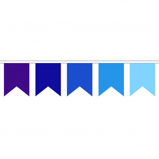 Данная флажная гирлянда подразумевает чередование флажков из пяти цветов Каждый флажок обработан методом горячего реза, что препятствует "осыпанию" ткани. Данная обработка флажков и пошив флажной гирлянды гарантирует её долгосрочное использование.