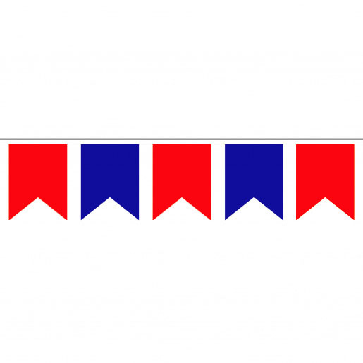 В данном виде используются чередование флажков двух цветов на выбор. Каждый флажок обработан методом горячего кройки ткани, что препятствует"осыпанию" ткани. Каждый флажок вшит внутрь ленты с расстоянием в 10 см. Данная обработка флажков и пошив флажной ленты гарантирует долгое использование.