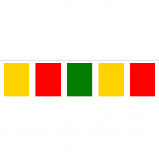 Данная флажная гирлянда подразумевает чередование флажков из трех цветов Каждый флажок обработан методом горячего реза, что препятствует "осыпанию" ткани. Данная обработка флажков и пошив флажной гирлянды гарантирует её долгосрочное использование.
