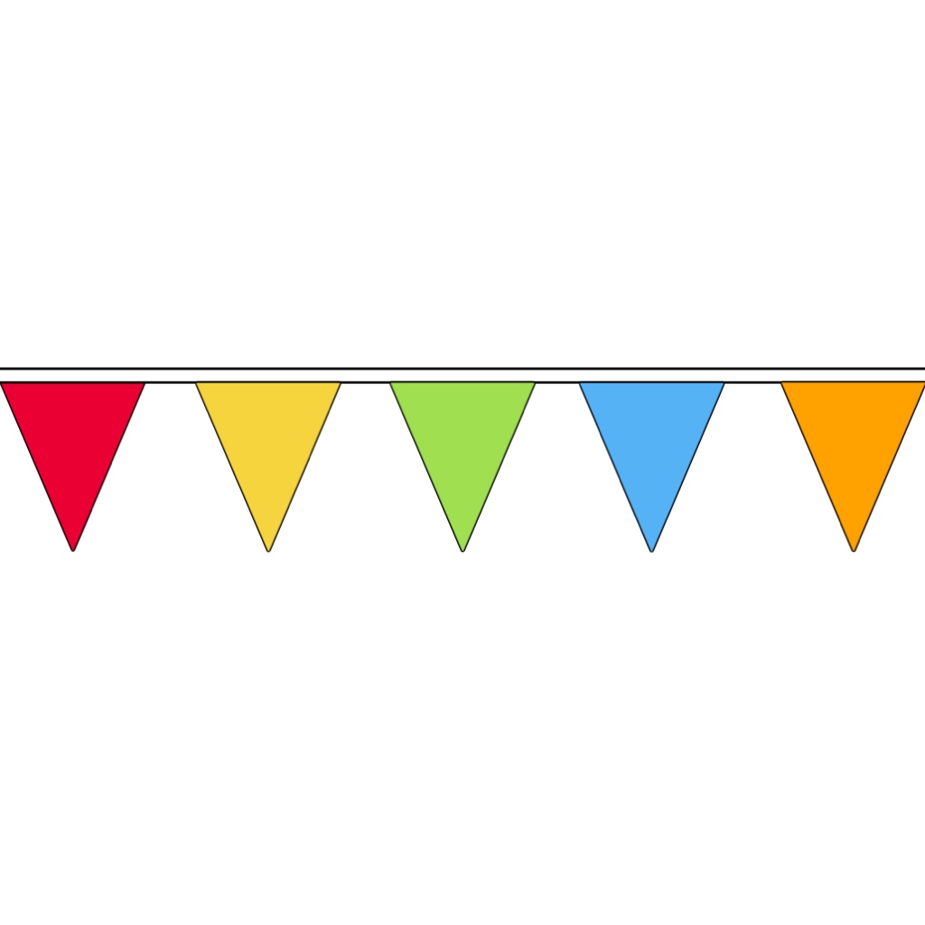 Данная флажная гирлянда подразумевает чередование флажков из пяти цветов Каждый флажок обработан методом горячего реза, что препятствует"осыпанию" ткани. Данная обработка флажков и пошив флажной гирлянды гарантирует её долгосрочное использование.