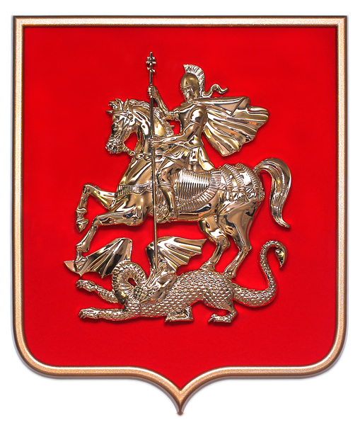 Герб Московской области 42х50см. Георгий Победоносец (пластик, металлизация) на щите из пластика. В рамке