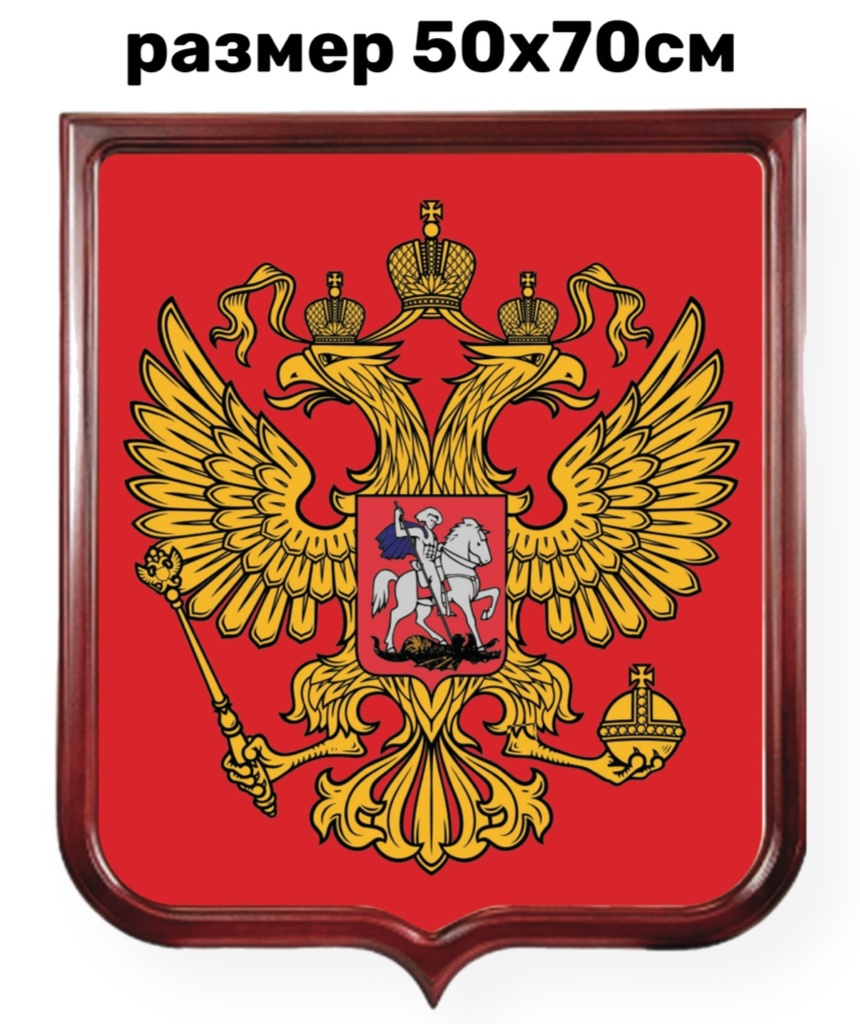 Герб России 50х70см. Сублимационная печать на габардине. В рамке из темного дерева