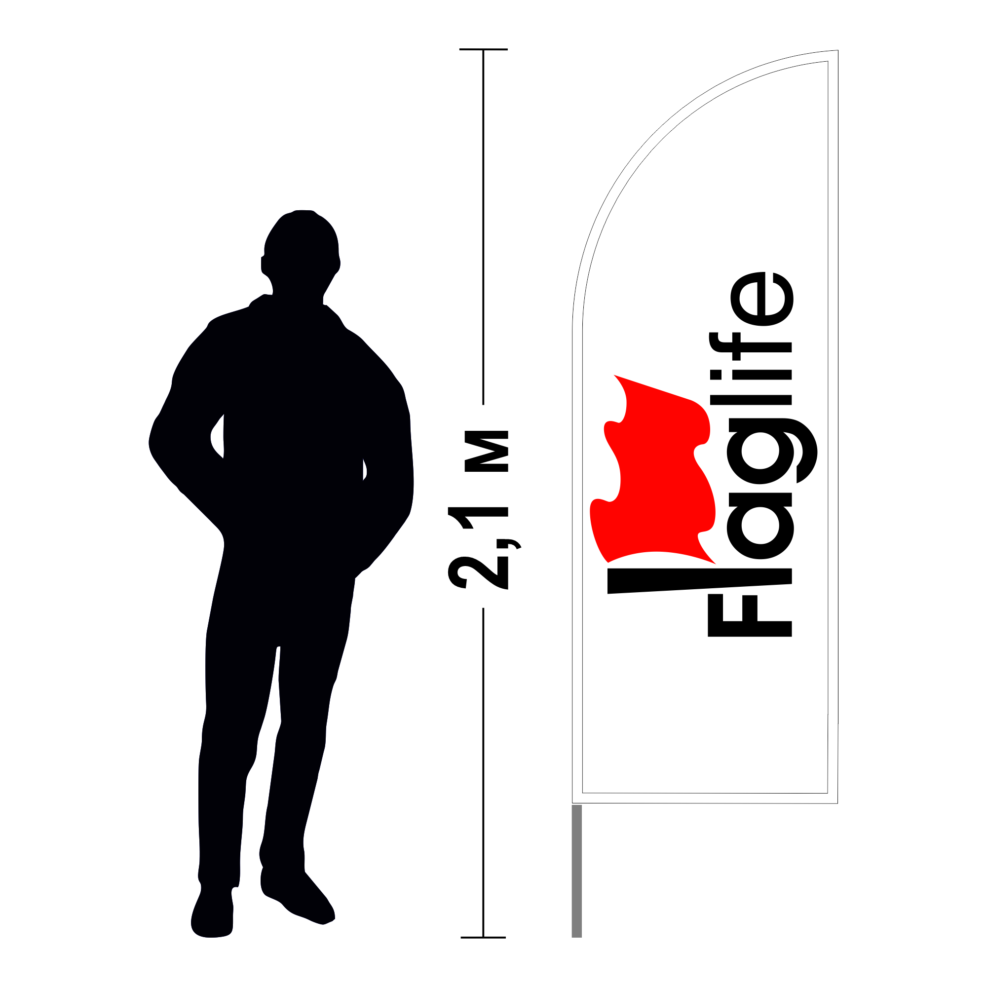 Изготовлен из алюминиевой трубы диаметр 20мм. Флагштоки секционный, состоит из нескольких секций. Верхняя секция всегда изогнута. Радиус изгиба верхней секции 70 см.