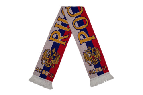 Шарф Россия двухсторонний трикотажный с бахромой, размер 16-18 см ширина, 140-150 см длина вязка жаккардовая.